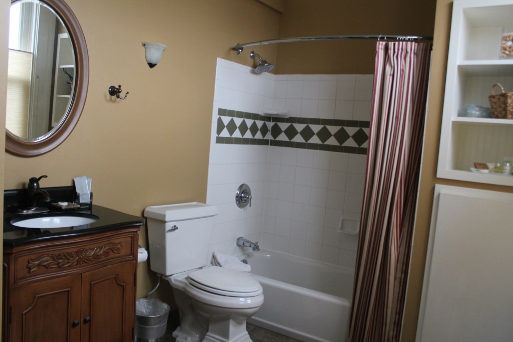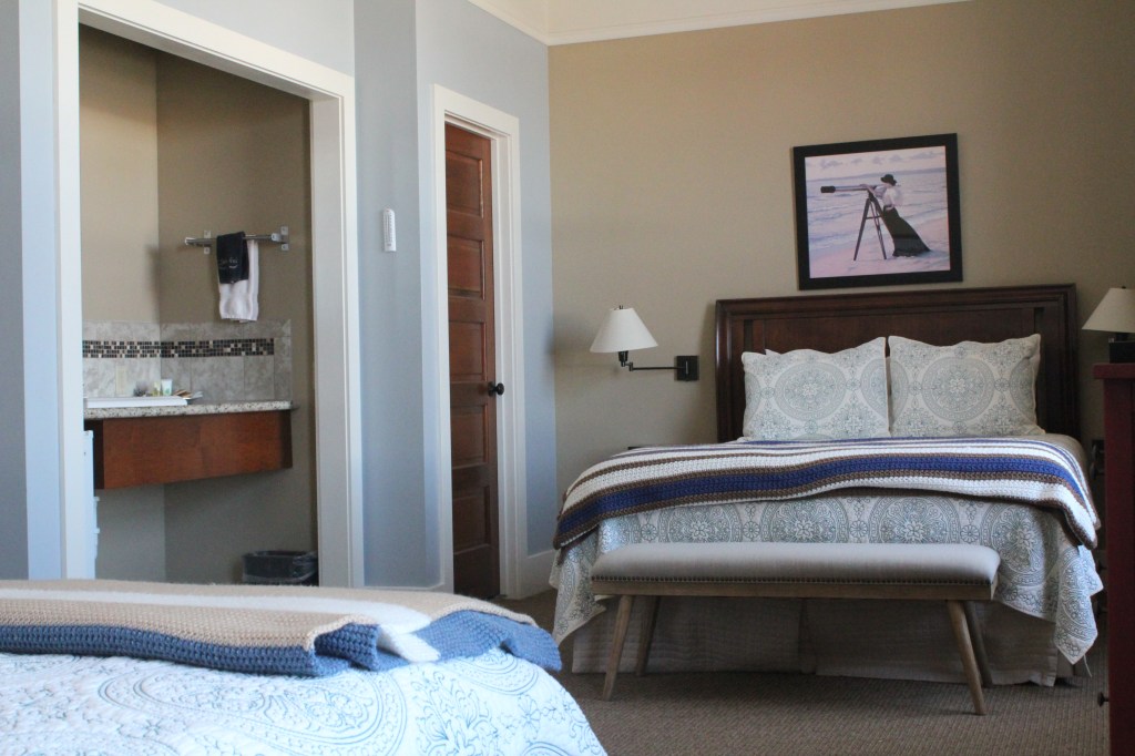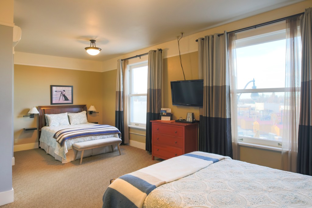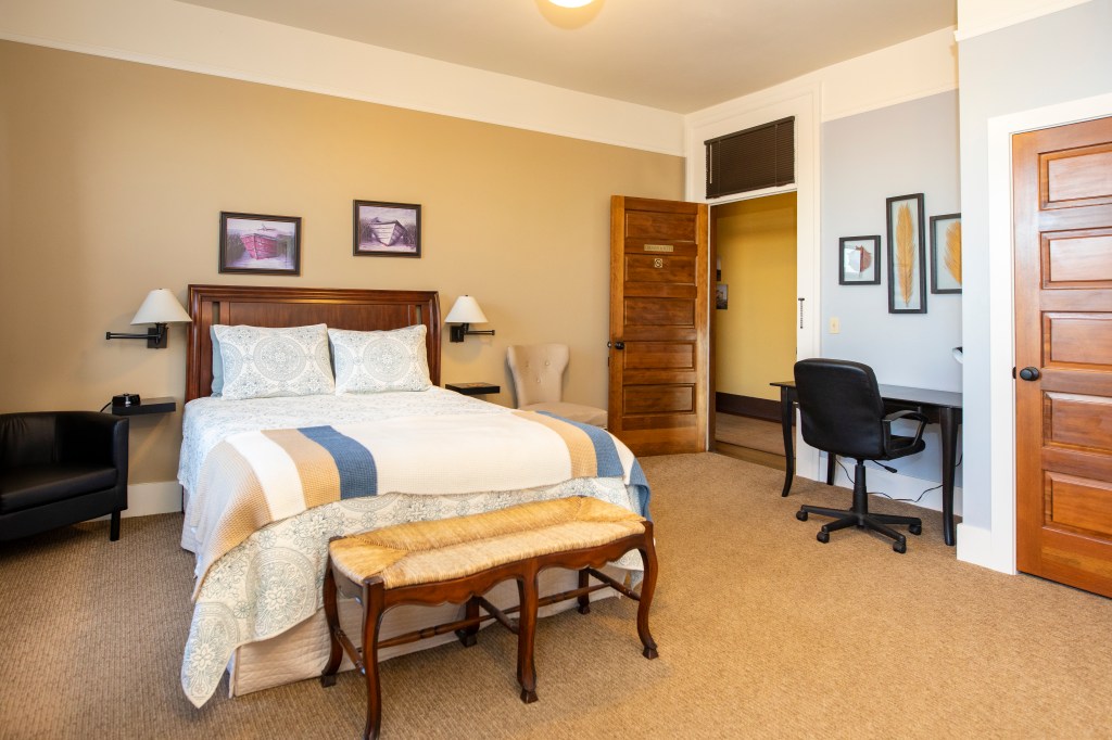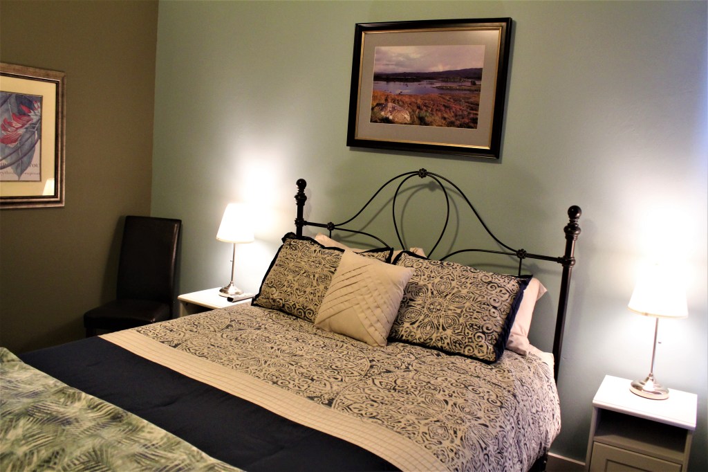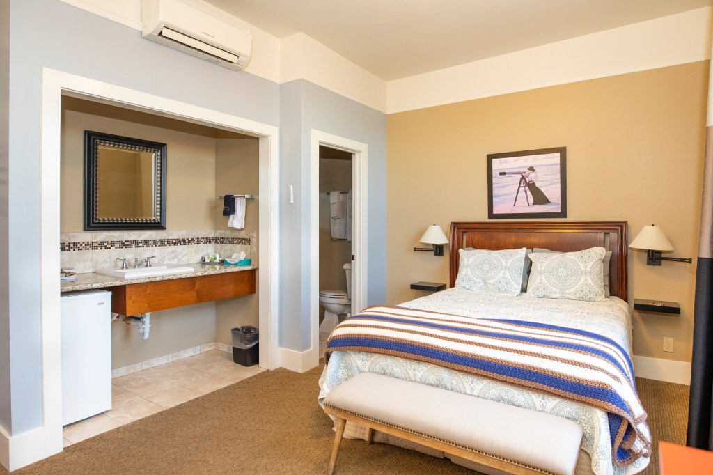 Queen bed room, with full tub & shower. Park view, air conditioning, complimentary WiFi, coffee maker, flat screen TV, hair dryer, iron & iron board, robes, bottled water and snacks.
